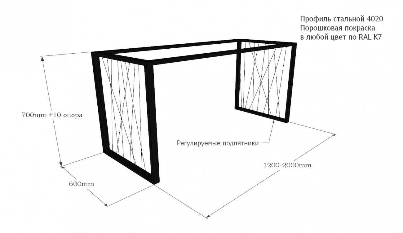 состыкованы без отверстий. Снизу выполнены регулировочные резьбовые ножки. Размер регулируемых ножек выбирается под вес конструкции.